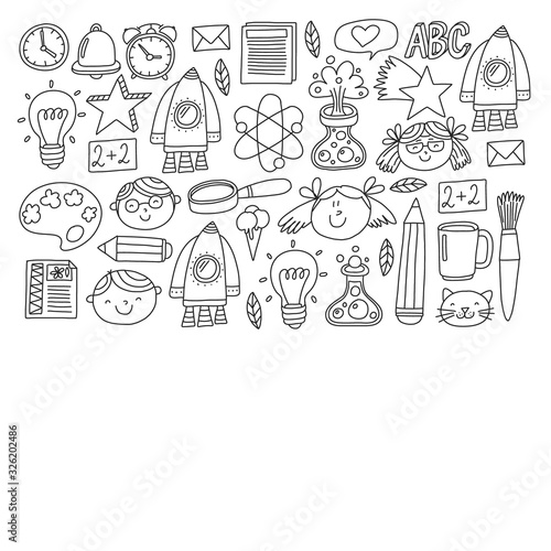 Vector pattern with back to school icons for posters, banners, covers. Kids, children education.