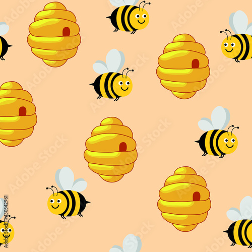 vector pattern with bees. flat image of honey pattern. beehive and bees