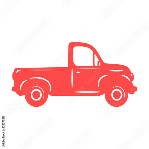 Vector pickup truck silhouette Red pickup trucks for carrying goods on the farm.