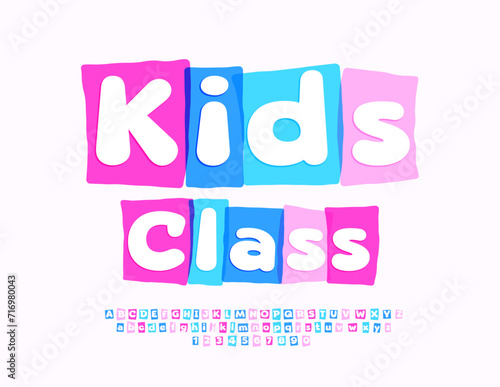 Vector playful flyer Kida Class with watercolor block Font. Funny Alphabet Letters and Numbers set