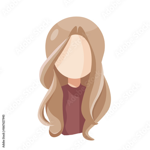 woman, blond, faceless, avatar, long hair, wavy hair, vector, female, character, illustration, portrait, burgundy, shirt, fashion, style, elegant, feminine, modern, graphic, casual attire, coiffure, beauty, young, digital, simple, front view, person, trendy, golden hair, girl, minimal, icon, profile, clean, stylish, concept, blonde hair, casual clothes