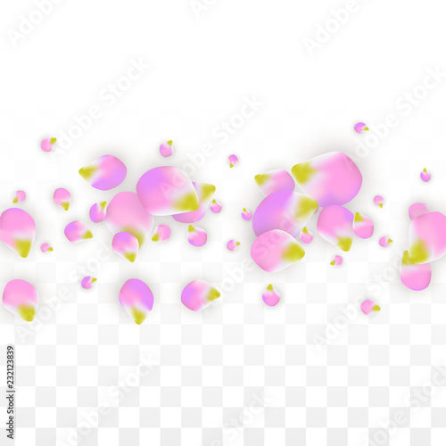 Vector Realistic Pink Petals Falling on Transparent Background. Spring Romantic Flowers Illustration. Flying Petals. Sakura Spa Design. Blossom Confetti.