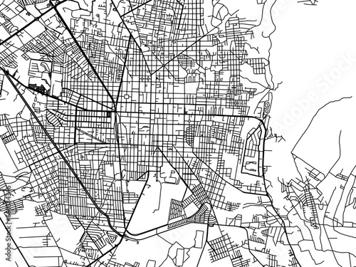 Vector road map of the city of Tehuacan in Mexico with black roads on a white background.