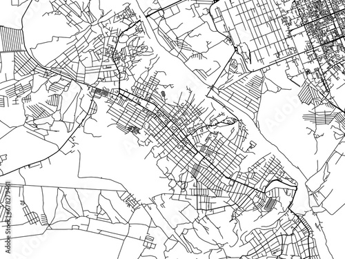 Vector road map of the city of Lysychansk in Ukraine with black roads on a white background.
