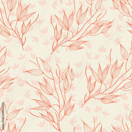 pattern, illustration, background, nature, wallpaper, design, decoration, vector, floral, seamless, texture, flower, leaf, textile, ornament, monochrome, plant, fashion, drawing, repeat, print, retro, saffron, art, garden, beauty, decorative, tree, fabric, cute, style, beautiful, summer, fall, flora, colours, peach, small, spring, season, wrapping, modern, paper, tree branch, leaf, leaf