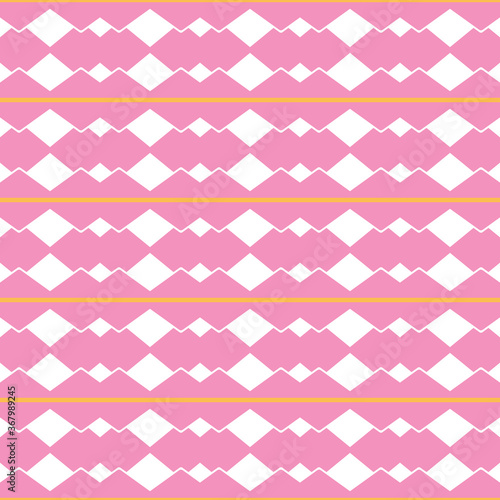Vector seamless pattern texture background with geometric shapes, colored in pink, white, yellow colors.