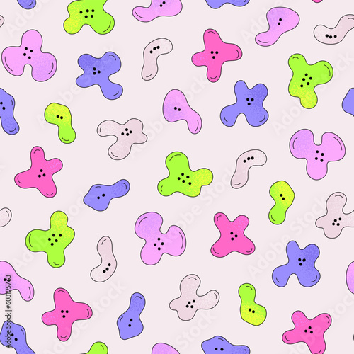Vector seamless pattern with bright abstract simple flowers in the form of colorful spots. Summer or spring floral design for wallpaper, fabric, wrapping paper, notebook covers, bed linen