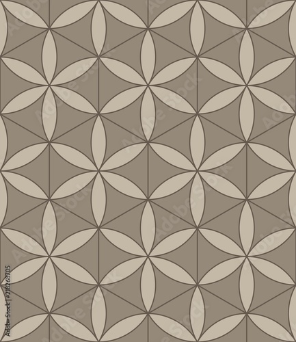 Vector seamless texture. Modern geometric background. A repeating pattern of abstract flowers inscribed in hexagons.