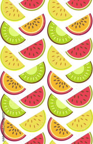 vector, illustration, texture, seamless, background, fruit, watermelon, mango, cantaloupe, kiwi, fresh, bright, summer, slice, tasty, wallpaper, sample, template, design, print, pattern, square, ornament, repeat, endless, decoration, periodic, art, textured, structure, food, white, healthy, colourful, natural, tropical, sweet, nature, green, lemonade