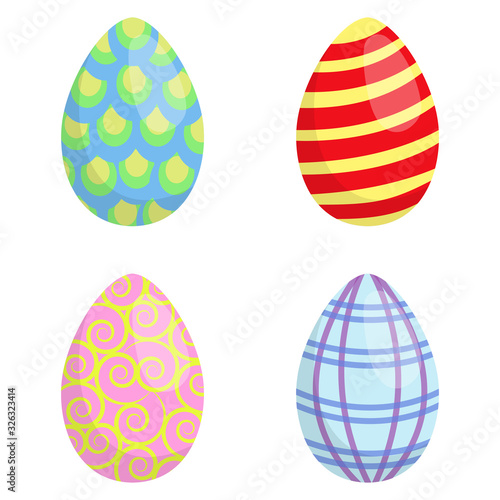 Vector set of easter eggs. Colorful objects in flat style isolated on white background.
