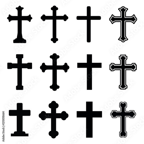 vector, set, flat, style, symbol, icon, religious, christianity, faith, belief, cross, design, minimal, simple, outline, silhouette, graphic, illustration, church, jesus christ, spirituality, minimalistic, holy, salvation, spiritual, catholic, protestant, resurrection, sacred, divinity, god, worship, divine