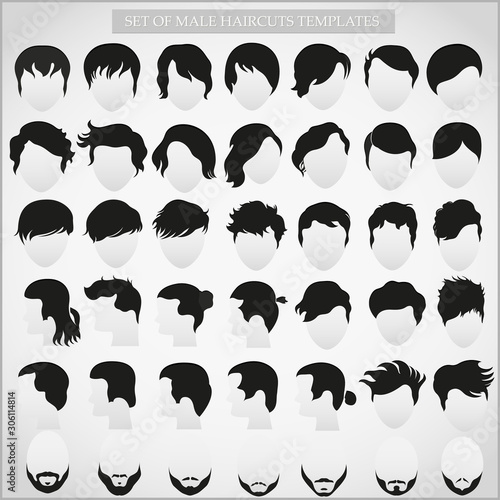 Vector set of men's hairstyles and haircuts on a light background. Patterns of men's hairstyles.