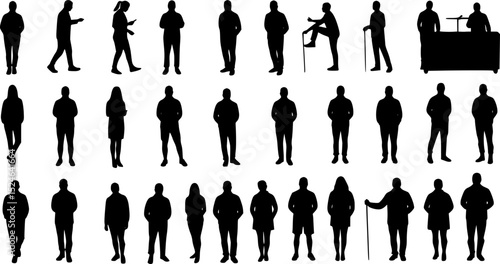 casual attire, cut-out, simple, walking, standing, people, ordinary, person, male, female, adult, young, human, isolated, vector, illustration, man, woman, diverse, background, silhouette, contour, collection, element, design, set, black