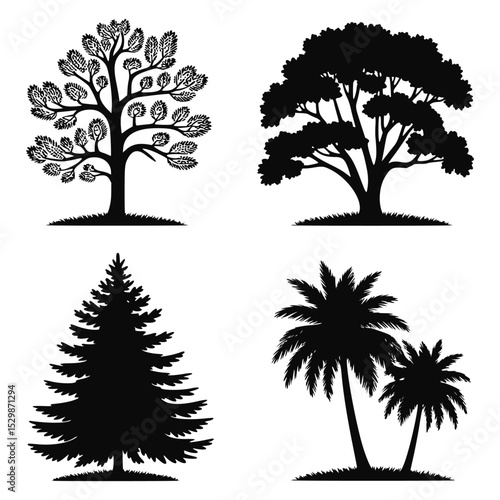nature, forest, park, landscape, deciduous tree, oak tree, pine tree, palm tree, vector, graphic, illustration, design, black-and-white, monochrome, background, logotype, environmental, botanical, environmentally friendly, seasonal, spring, summer, fall, winter, graphic design, timberland, tropical, vector graphics, outline, decorative, simple, modern, abstract, environmentally friendly, clipping