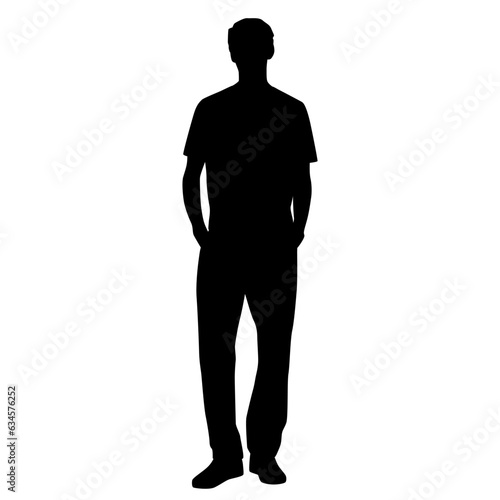 Vector silhouette of man standing, single, business people, black color, isolated on white background