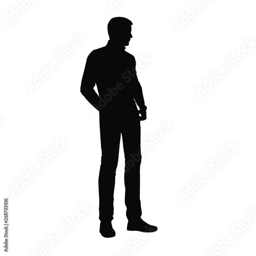 Vector silhouette of man standing, business people, black color, isolated on white background