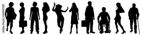 silhouette, people, vector, person, business, background, white, man, isolated, group, illustration, standing, male, businessman, black, man, silhouette, team, adult, teamwork, set, human, young, professional, businesswoman, female, lifestyle, fashion, work, manager, wheelchair, disabled, handicap, stick