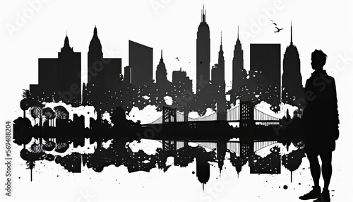 vector silhouette skyline illustration, Made by AI,Artificial intelligence