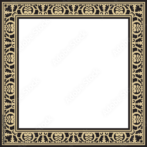 Vector square gold with black border, frame, Pompeii. Rectangle Neopolitan ornament. Art of Ancient Rome. Template for stained glas