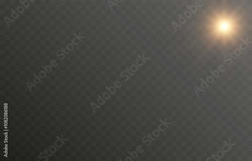 Vector sun light with glare. Golden flash png. Sun rays png. Glare from the sun, dawn, light effect.