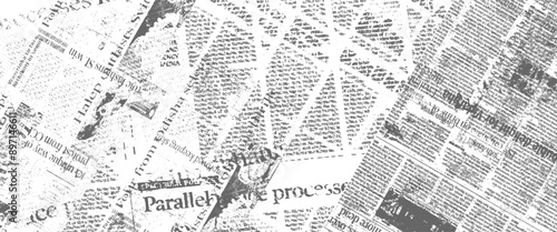 Vector white and black newspaper paper grunge vintage old aged texture with fragments of newspaper text Transparent background.