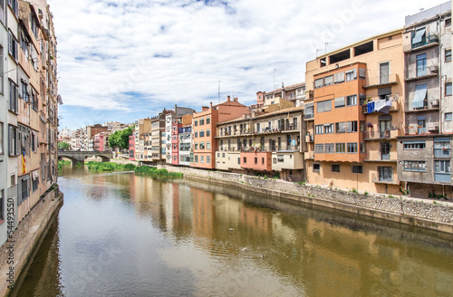 view, view, city, spain, historic, ancient, characteristic, daytime, sun, cloud, heaven, tree, vegetation, nature, house, cathedral, church, pivotal, wall, window, bell tower, string instrument, branch, leaf, brick, stone, typical, catalonia, small, people, tour tourism, goal, visitor, europa, mediterranean, state, house, shore, edge, bridge, cross, navigable, water, river, flag, classic
