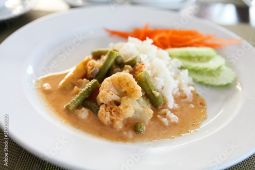 curry, vegetable, vegetable, cauliflower, bean, bean, green, yellow, vegetarian, rice, cucumber, food, thai, siam, red