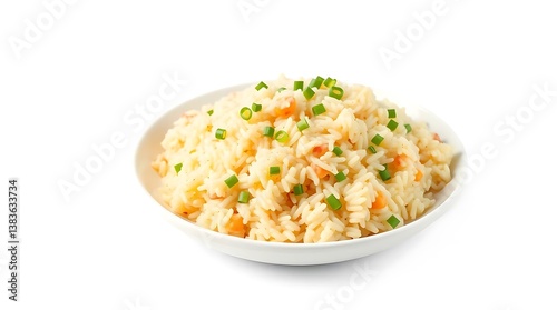 rice, vegetable, fried, scallion, bowl, garnish, cooked, food, plated, white, carrot, texture, savoury, dish, minimal, homemade, rustic, meal, cookery, tender, appetising