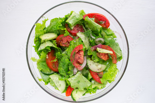 Vegetable salad of tomatoes, cucumbers and lettuce