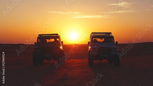 adventure, offroad, vehicle, silhouette, sun, sunset, lighting, orange, hue, desert, landscape, travel, exploration, outdoors, journey, nature, scenic, horizon, environment, terrain, dusk, evening, photo, sky, dramatic, warm, background, tranquil, freedom, recreation, rugged, solitude, remote, atmosphere, peaceful, picturesque, scene, contrast, glow, wilderness, aesthetic, natural