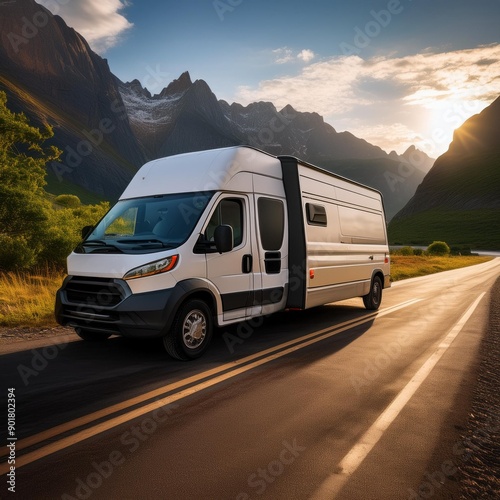motorhome, camping, travel, car, highway, van, truck, truck, vehicle, bus, transportation, highway, vacation, advance, enraptured, mountain, house, white, tour tourism, recreational, landscape