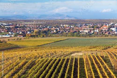 vinery, vitis vinifera, autumn, autumn, landscape, aerial, aerial view, agricultural, agriculture, background, beautiful, beauty, blue, bush, common, country, countryside, europa, fall, farm, farming, field, fruit, gold, grape, grapevine, grapevine, green, line, moravia, nature, panorama, plant, plantation, scenery, south, town, township, view, village, vine, vine, white, wine, winery