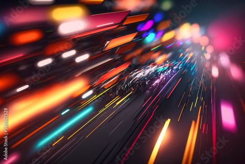 Velocity of Light: A High-Tech Concept Illustrating Speed and Futuristic Technology with Neon and Light Trails created with Generative AI technology