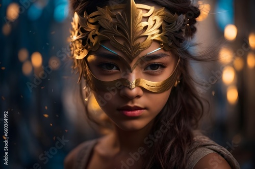 venetian carnival mask - A women in a golden mask - Celebration of Disguise: Young Woman in Carnival Mask