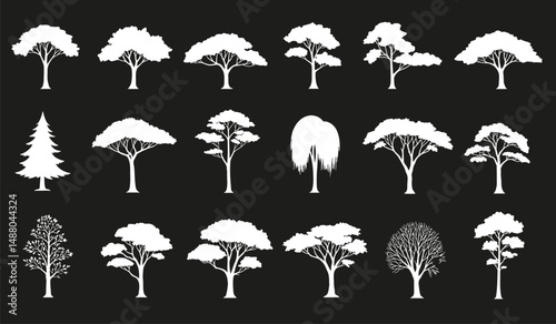 Versatile Flat Tree Vector Silhouettes in EPS and AI Formats with Clean Lines and Stylized, Minimalist Design Approach