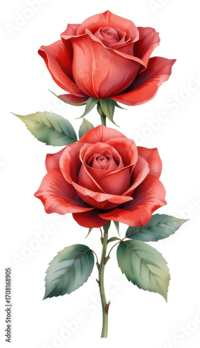 flower, blossom, rose, bloom, plant, stem, leaf, foliage, greenery, red, pink, vibrant, colourful, layered, soft, realistic, detailed, natural, botanical, floral, garden, decorative, fresh, lush, elegant, romantic, stemmed, tall, upright, single, vertical, high-coloured, bright, textured, serrated, artistic, serene, peaceful, naturalistic