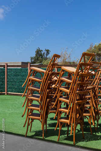 abstraction, area, armchair, arrangement, blue, catering, chair, colourful, day, decoration, early, empty, event, furniture, green, group, hardwood, holiday, industry, isolated, light, many, modern, morning, object, outside, patio, pattern, photo, pile, plywood, row, seasonal, seat, seating, sky, stack, terrace, tower, wood