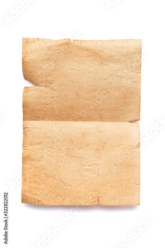 Vertically oriented old ancient piece of paper with a fold line in the middle. Vintage letter or message template with copy space.