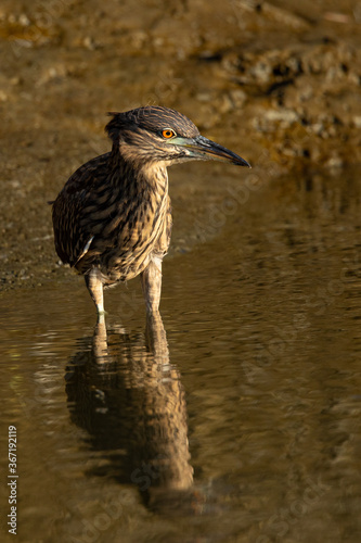 Very young black-crowned night heron in beautiful light , seen in the wild in North California