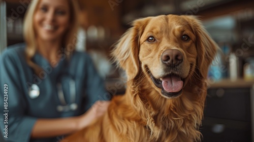 vet, pet, dog, golden retriever, scrub, smile, friendly, professional, veterinary, woman, animal welfare, health care, caring, nurturing, clinic, indoor, happiness, work, service, assistance, trust, companionship, joy, positive, occupation, companion, canino, cute, satisfaction, comfort, clinical, dedicated, attentive, modern