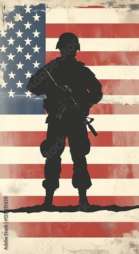 Veterans Day graphic material Patriotic American Flag and Military Memorabilia, American flag watercolor, Military boots silhouette, Soldier tribute