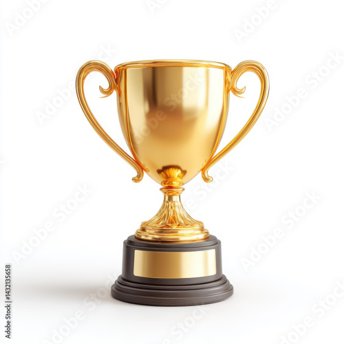 Vibrant 3D golden trophy cup cartoon icon, perfect for celebrating achievements, showcased on a clean white backdrop.