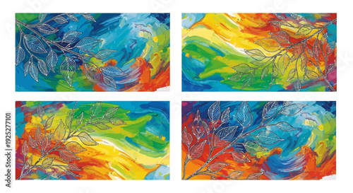 Vibrant abstract art pieces on display.