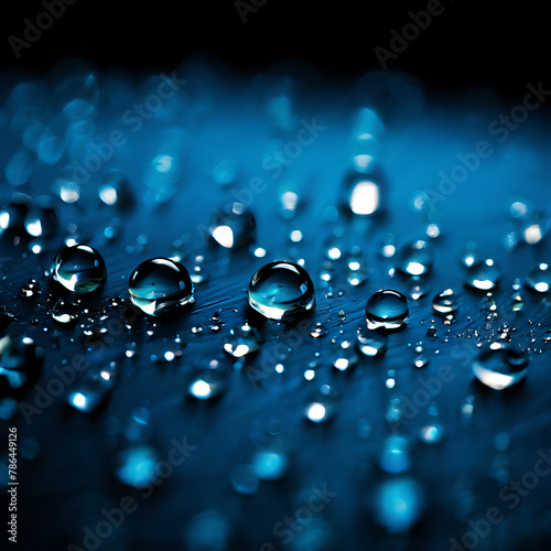 Vibrant abstract backdrop. Close-up of azure water droplets against a cyan-blue canvas, accented with hints of carbon black