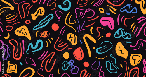Vibrant Abstract Colorful Geometric Shapes Pattern on Black Background