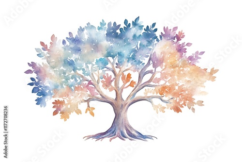 Vibrant abstract digital art depicting a colorful multi colored tree