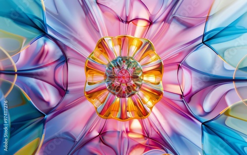 Vibrant abstract flower design with colorful petals, blending soft hues of pink, blue, and gold, perfect for artistic backgrounds.