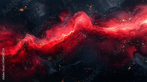 Vibrant abstract marbled texture ideal for Christmas designs, holiday cards, or seasonal decor, showcasing rich reds and blacks with warm golden accents.