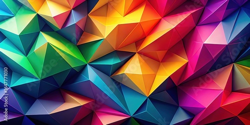 Vibrant Abstract Polygonal Surface with a Spectrum of Saturated Hues and Interlocking Geometric Shapes