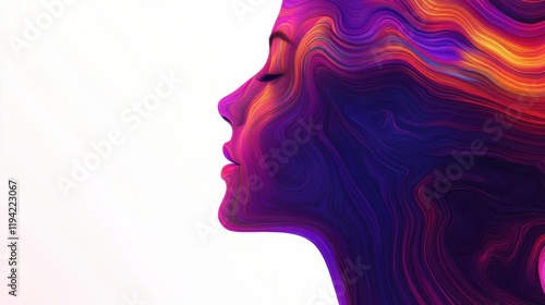 Vibrant Abstract Portrait of a Woman's Silhouette with Flowing Colorful Hair Representing Emotion and Creativity in a Dreamy Artistic Style